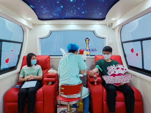 (圖為 采血車內(nèi)獻血現(xiàn)場)